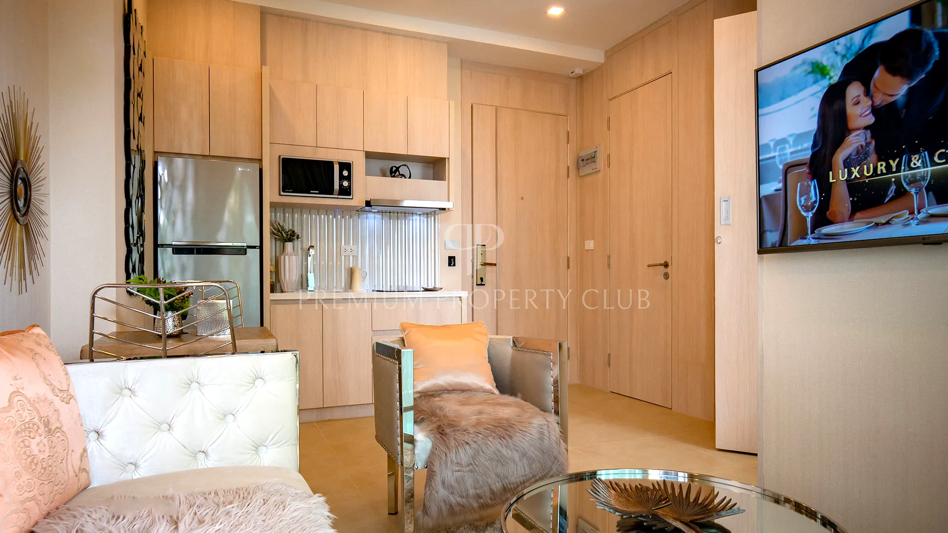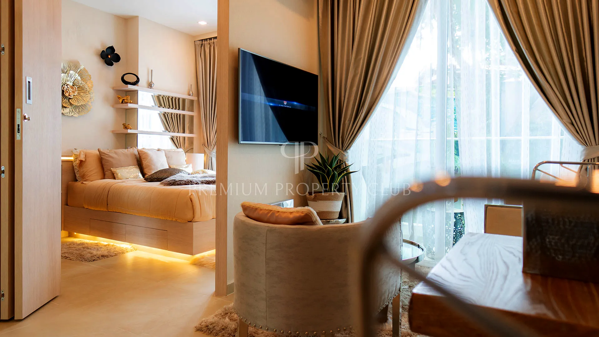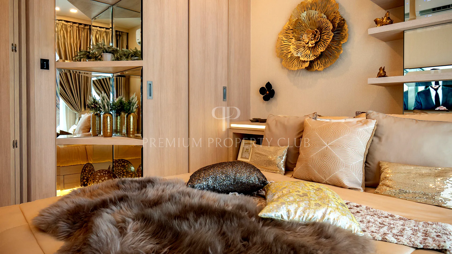 Offering a 29 sqm layout, the Venice Suite is an elegantly designed one-bedroom apartment that balances comfort and sophistication. With a separate bedroom, open-plan kitchen, and private balcony, this residence is perfect for individuals or couples seeking a stylish living space in one of Pattaya’s most iconic towers.